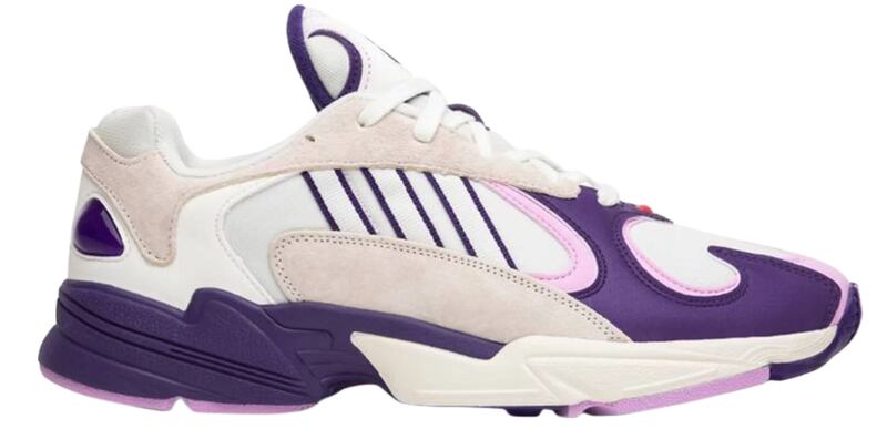 Inspiradas en Frieza, vienen con su parte superior blanca y morada, las tres franjas clásicas de Adidas en morado y una suela blanca y morada. Este modelo fue lanzado en septiembre de 2018. Precio de las zapatillas: 260 dólares.