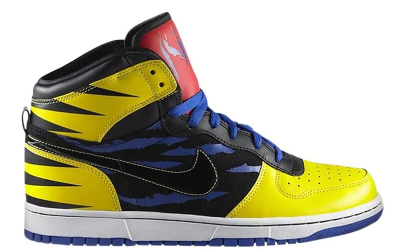 Estas zapatillas modelo Big High de la empresa del swoosh juega con los colores del uniforme de Wolverine en la serie de los 90, X-Men. El color predominante es el amarillo, con elementos azules y negros, siempre con el estilo “destrozado” por las garras. Su lengüeta es roja y tiene la palabra Nike, como hecha con las garras del personaje. La antesuela es blanca y la suela, azul. En GOAT pueden hallarse por 340 dólares.