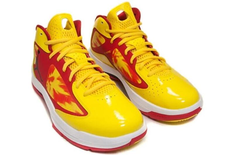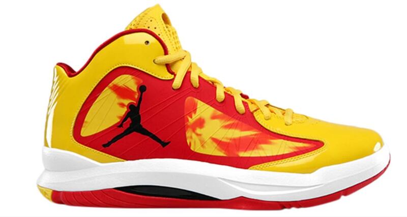 Las Jordan Aero Flight Hulk Hogan juega con los colores clásicos del luchador, rojo y amarillo, con el amarillo en la parte superior y frontal y la roja en los paneles laterales. El Jumpman, en negro, adorna en el lateral de las zapatillas.