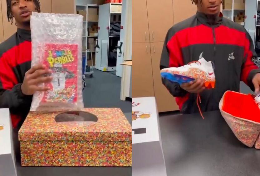 En el video, Chase exhibió los zapatos, la caja personalizada de Nike x Fruity Pebbles y una caja de cereal personalizada con el nombre de Ja’Marr Pebbles.