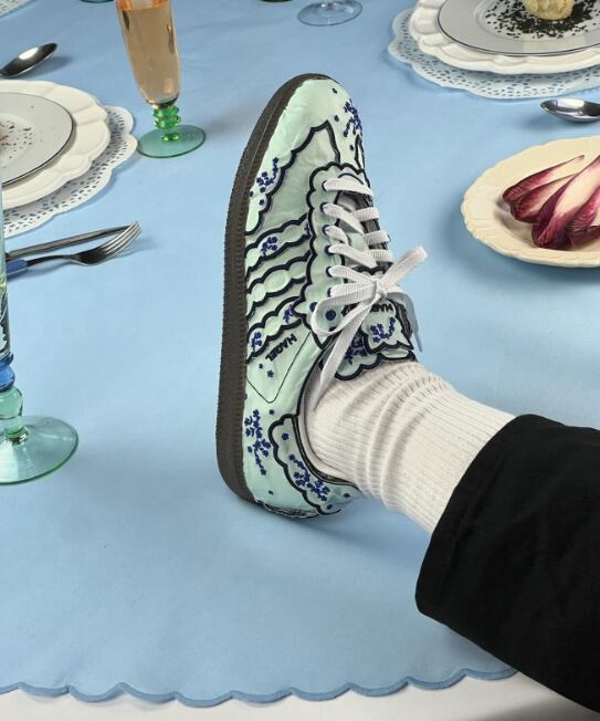 Cada panel se destaca con una línea de costuras en contraste, y en todas las zapatillas, pequeñas flores diseñadas por Cecilie Bahnsen, una reconocida diseñadora de Copenhague, están bordadas.