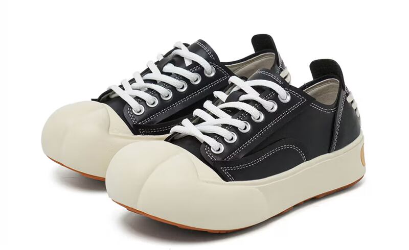 Estas sneakers, que fusionan el estilo clásico de Jack Purcell con los característicos zapatos de gran tamaño de Bugs Bunny, están diseñadas para capturar las características del travieso conejo. Así, la nueva creación de BBiMP se luce con una puntera de gran tamaño que imita los tres dedos del pie de Bugs Bunny, combinada con un diseño sobrio de cuero negro y detalles de costuras y cordones en blanco.