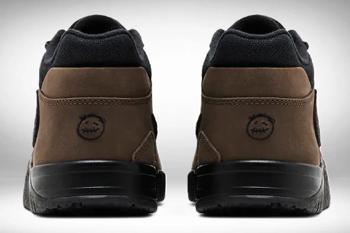 La parte superior de la zapatilla está elaborada con una mezcla de lona negra transpirable y superposiciones de nobuk marrón, logrando un diseño elegante y versátil. El icónico Swoosh invertido, distintivo de las colaboraciones de La Flame, está confeccionado en gamuza negra y se ubica en el lateral, aportando un toque único que los fans reconocerán al instante.
