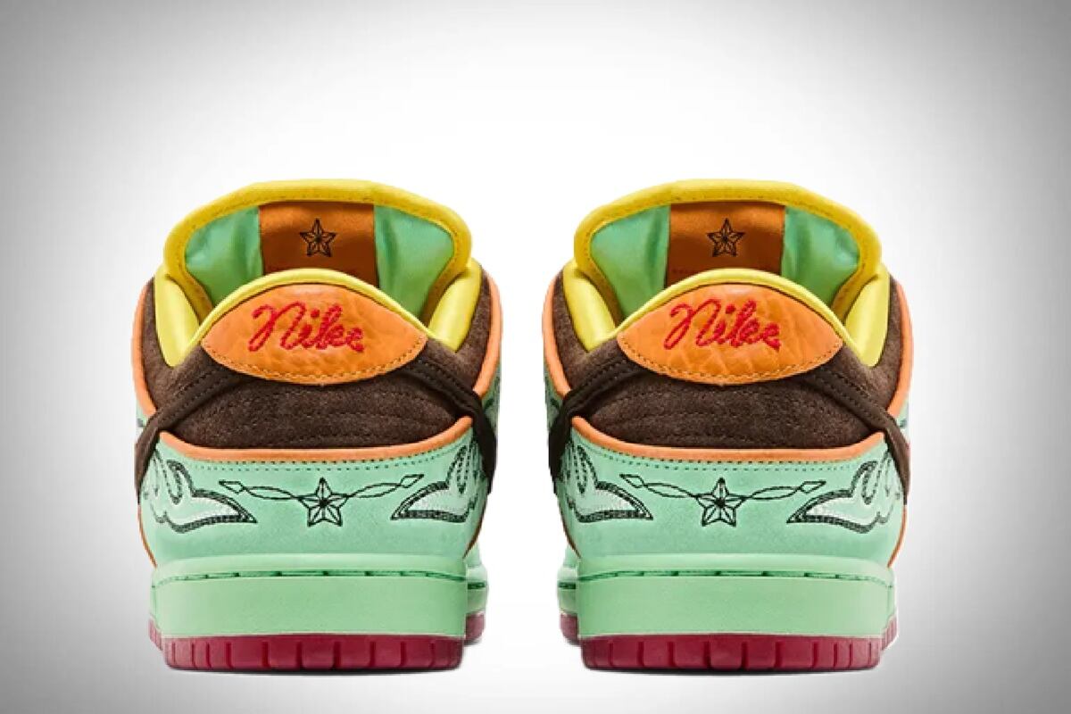 Pero la historia no termina ahí. Al interior, la plantilla ofrece un detalle inesperado: un vaquero pastoreando ganado, una ilustración que transforma a esta zapatilla en un lienzo narrativo. Es un recordatorio de que cada par cuenta una historia, y la de las Dunk Low SB Rodeo es una que celebra identidad, oficio y resistencia.