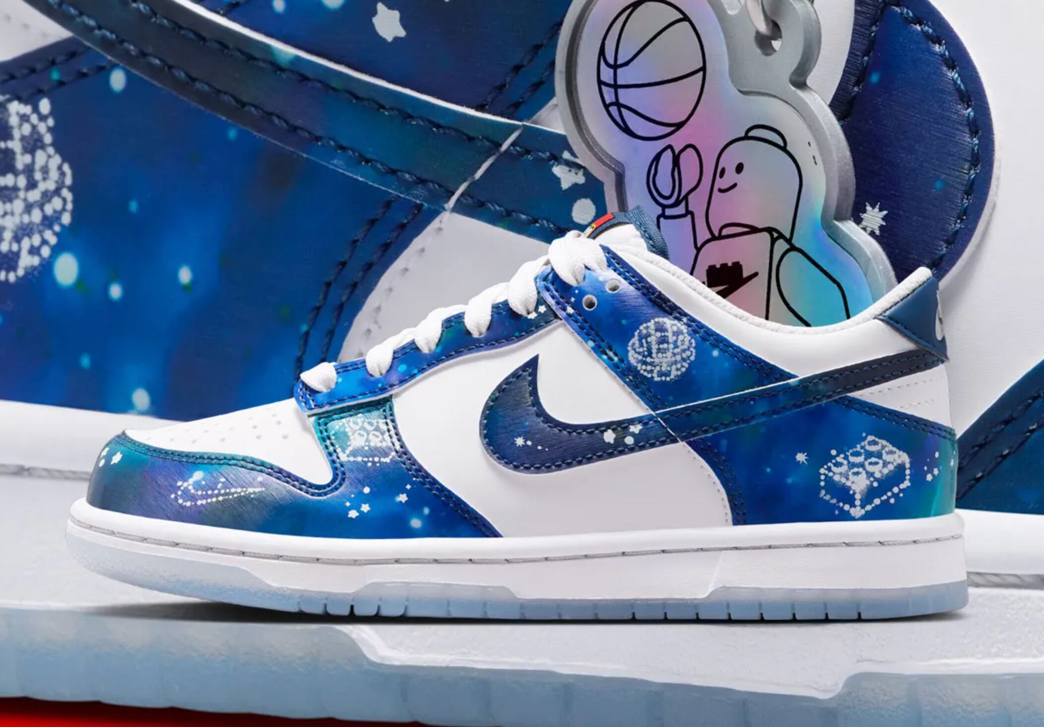 La colaboración entre Nike y LEGO se expande con el lanzamiento de la Nike Dunk Low “Brave Blue” (IM1448-100), un modelo que transforma el clásico sneaker en un lienzo galáctico. Este lanzamiento forma parte de la colección Holiday 2025 de ambas marcas y rinde homenaje a los icónicos sets de exploración espacial de LEGO.