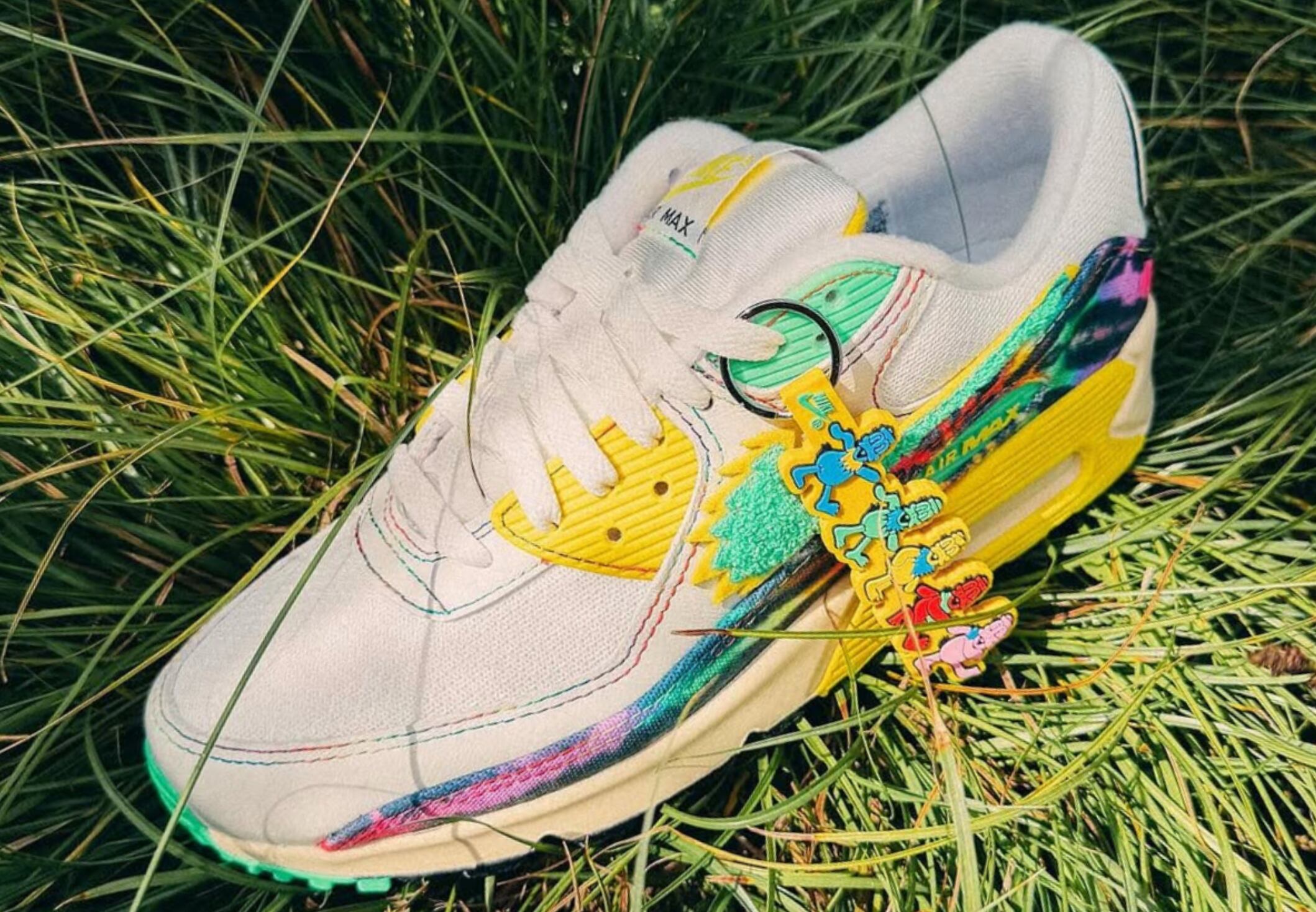 El diseño del modelo Air Max 90 es una mezcla de la estética tie-dye de Grateful Dead con los colores vibrantes y el espíritu deportivo de los Oregon Ducks. La paleta oficial incluye los tonos Sail, Green Shock y Yellow Strike.